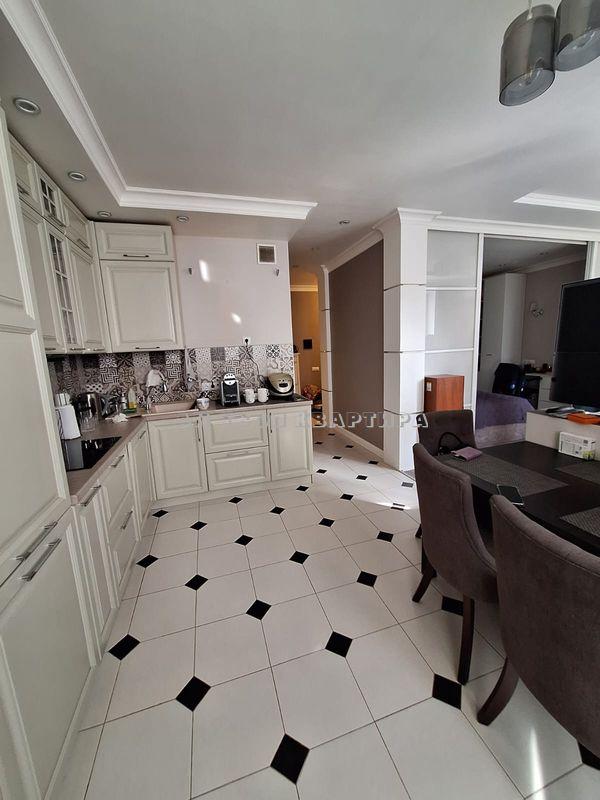 Ремонт очень качественный, везде установлена дорогая сантехника, коммуникации новые, использовались дорогие качественные материалы. В квартире несколько зон с теплыми полами, потолки - гипсокартон, переходные выключатели, много розеток для максимального удобства, установлен кондиционер, грамотная система электрики.