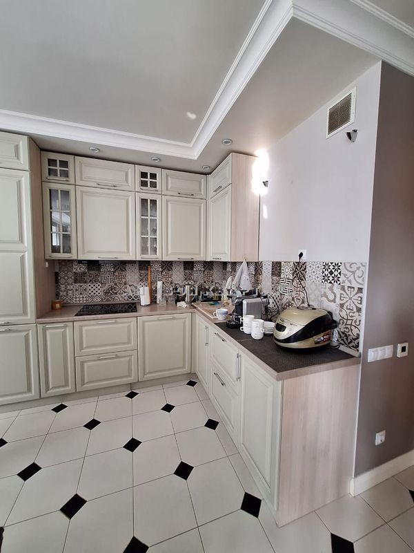 Светлая просторная кухня, остается шикарный кухонный гарнитур (фасады из МАССИВА ДУБА, внутренняя подсветка, везде доводчики Blum), техника: варочная панель, посудомоечная машина, духовой шкаф и вытяжка.
